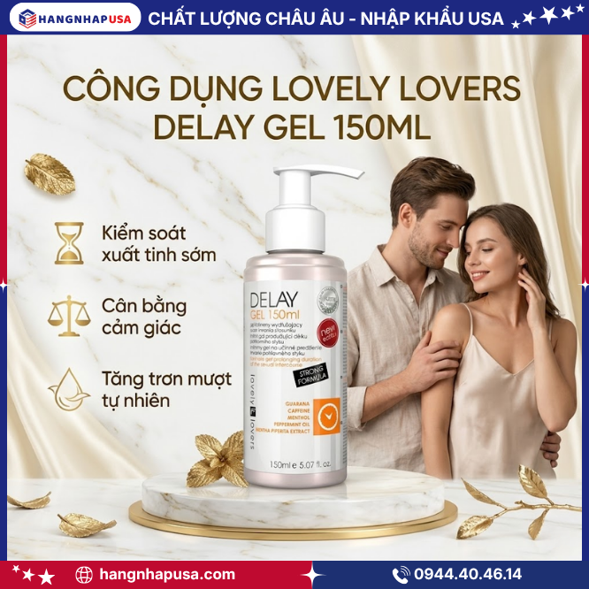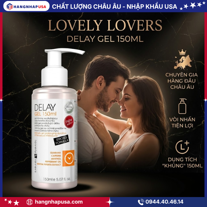 Lovely Lovers Delay gel 150ml dòng gel hỗ trợ kéo dài thời gian thế hệ mới từ Châu Âu chính là biện pháp “cứu cánh” hoàn hảo, giúp phái mạnh lấy lại bản lĩnh, làm chủ cuộc chơi và đưa nàng đi đến tận cùng của sự thăng hoa bằng phong độ bền bỉ nhất.