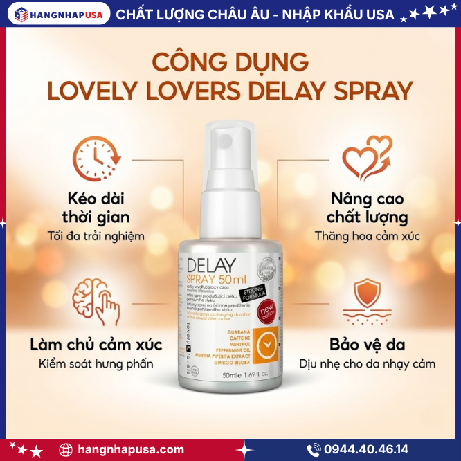 Bạn cảm thấy tự ti vì “chưa đi đến chợ đã tiêu hết tiền”? Tình trạng xuất tinh sớm không chỉ khiến bạn thất vọng mà còn làm “người ấy” hụt hẫng, gây rạn nứt tình cảm lứa đôi? Đừng để nỗi lo lắng này cản trở bản lĩnh phái mạnh. xịt kéo dài thời gian quan hệ Lovely Lovers Delay Spray 50 ml chính là biện pháp “vàng” từ Châu Âu, giúp bạn làm chủ cuộc chơi và mang lại cảm xúc thăng hoa trọn vẹn.