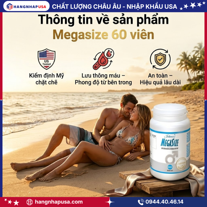 Megasize 60 viên hỗ trợ tăng kích thước, sinh lực bền bỉ, nhập khẩu chính hãng từ Mỹ.