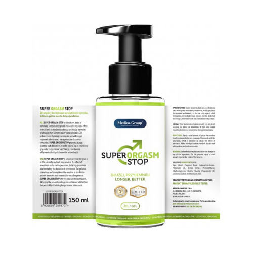 Super Orgasm Stop Zel 150ml là dòng gel bôi hỗ trợ kéo dài thời gian quna hệ cao cấp được sản xuất bởi tập đoàn Medica Group nổi tiếng tại Ba Lan (Liên minh Châu Âu – EU).